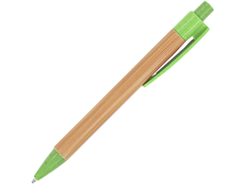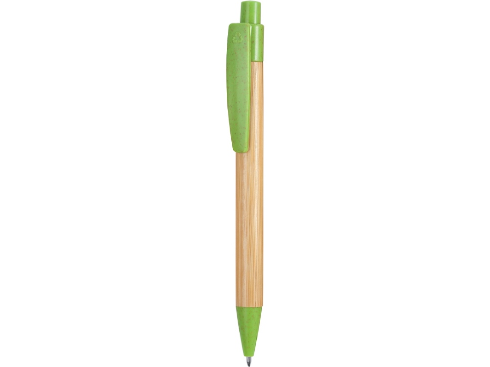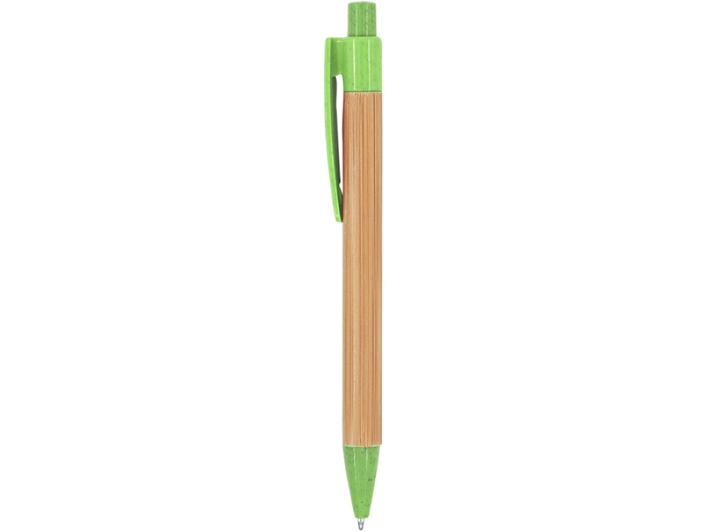 Шариковая ручка с бамбуковым корпусом. Наконечник, клипса и кнопка из пшеничного волокна / ABS. Синие чернила.