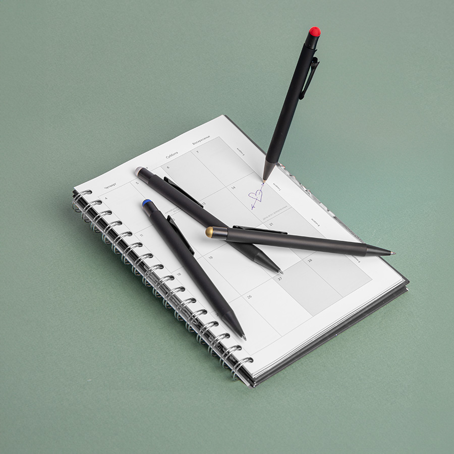 В черном-черном городе, на черной-черной улице жила черная, но очень стильная ручка FACTOR BLACK. Немецкие чернила и шарик из карбида вольфрама обеспечат гладкое письмо без особого нажима. Приятный на ощупь бархатистый корпус с покрытием soft touch и яркий контрастный стилус на торце обязательно обратят на себя внимание. На ручке возможна двухцветная 3D-гравировка. Эта красавица точно не останется незамеченной, особенно если ее персонализировать! • Pantone, близкий к 3554C• Размер 140*10 мм• Корпус из алюминия с покрытием soft touch• Зеркальная подложка в цвет стилуса• Яркий стилус. Pantone, близкий к 200 С• Металлический клип-прищепка черного цвета• Носик и кнопка из пластика• Нажимной механизм подачи стержня• Пулевидный пишущий узел 1.0 мм• Длина линии письма 1000 м • Чернила Dokumental. Цвет чернил синий• Сменный стержень Parker type