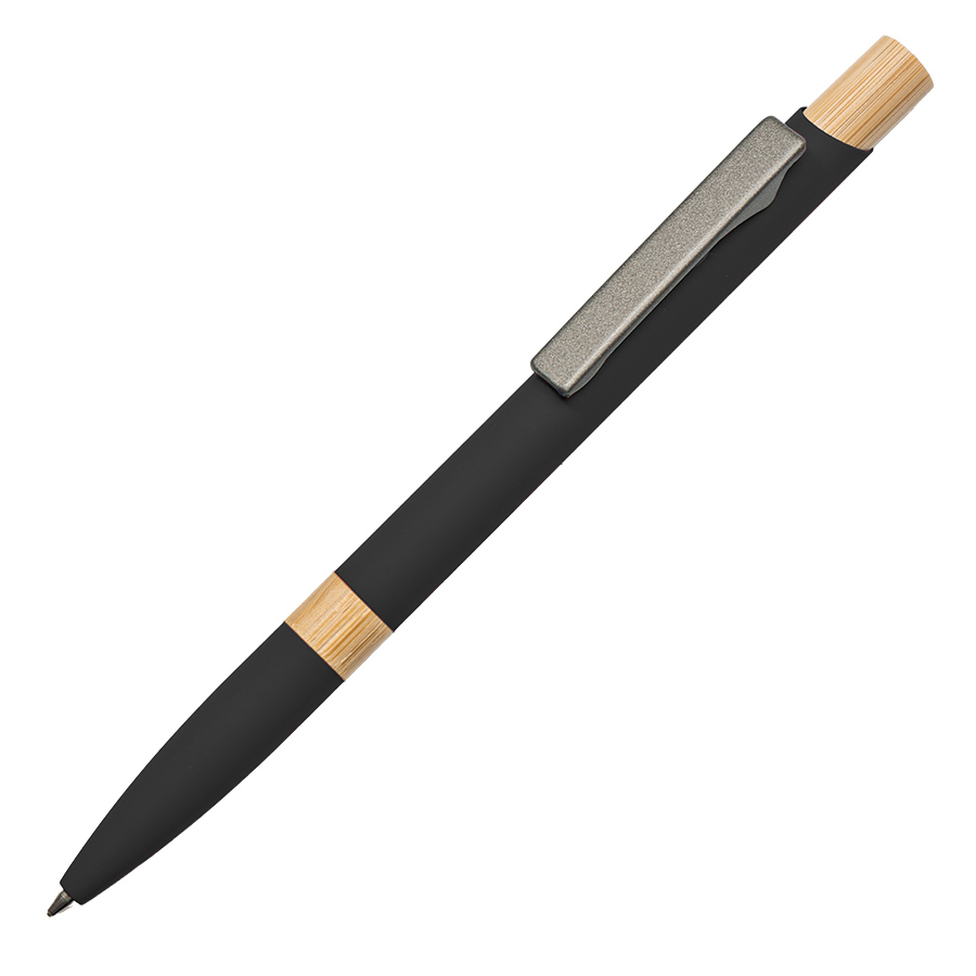 Экстравагантная модель ручки FRESCO. Корпус алюминиевый с матовым покрытием soft touch - ручку приятно держать в руке. Металлический клип-прищепка является эксклюзивом бренда В1. Отделка из натурального бамбука добавляет модели оригинальность. Кнопка нажимного механизма оптимального диаметра удобна для подушечки пальца. Визуально ручка выглядит очень благородно. В использовании гарантированно комфортна. • Цвет, близкий к Pantone 200C• Размер φ 10 x 140 мм• Корпус из алюминия с покрытием soft touch• Металлический клип-прищепка• Отделка - бамбук• Нажимной механизм подачи стержня• Пулевидный пишущий узел 1.0 мм• Длина линии письма 800-1000 м• Чернила Dokumental, цвет чернил синий• Сменный стержень Parker type• Виды нанесения: гравировка