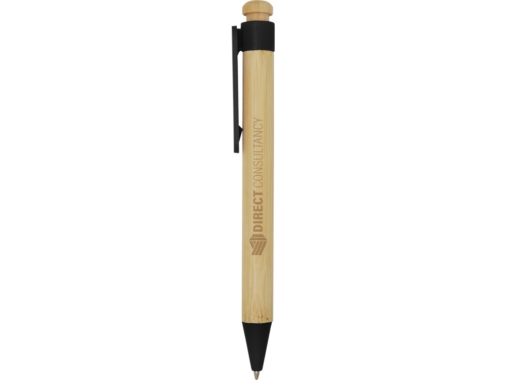 Шариковая ручка с зажимом и наконечником из переработанного пластика, а кнопка и корпус изготовлены из бамбука. Цвет чернил: черный. Длина непрерывной линии: 1000 метров. Размер пера: 1,0 мм. Бамбук.