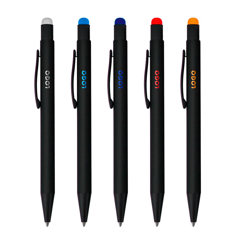 Металлическая шариковая ручка черного цвета с поверхностью soft-touch. Особенностью этой ручки является зеркальная гравировка, которая на цветных ручках вскрывается в цвет стилуса.