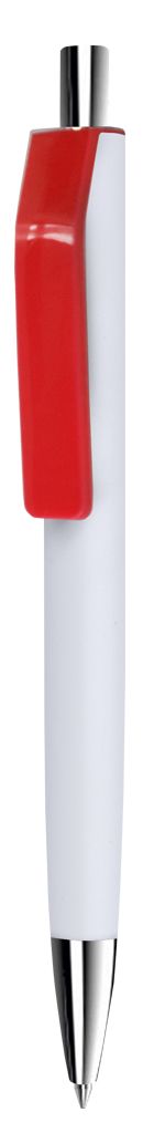 Шариковая ручка в корпусе из глянцевого пластика белого цвета. Клип контрастного цвета. Наконечник и кнопка с хромированным покрытием.