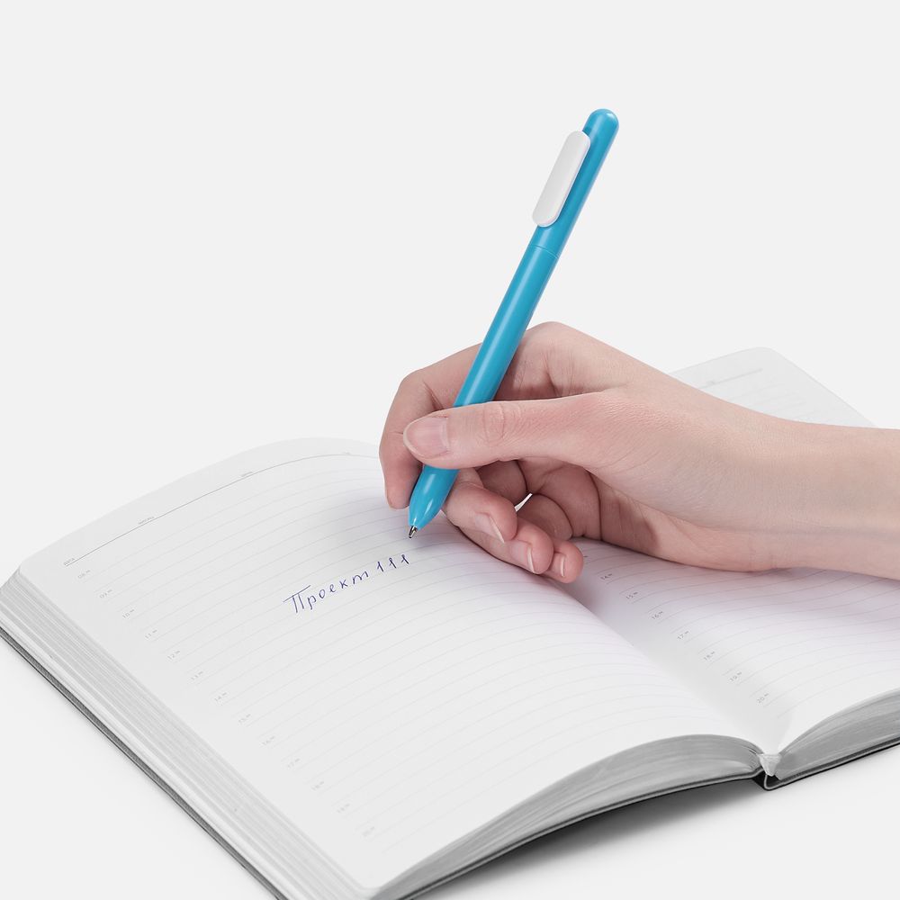 Ручка из глянцевого пластика с белым клипом.
