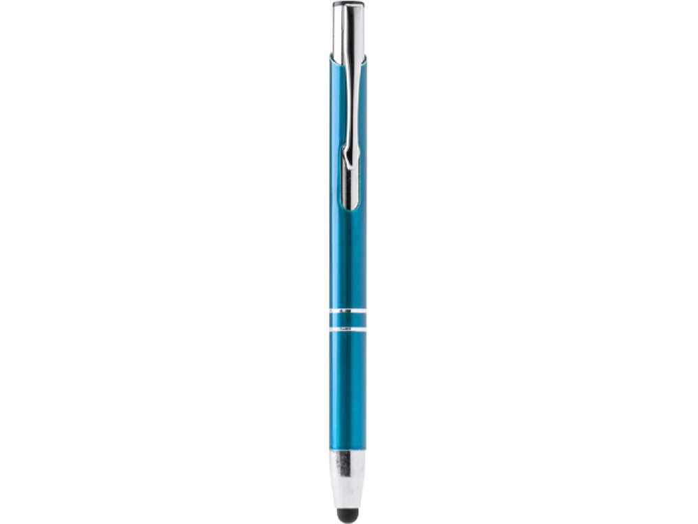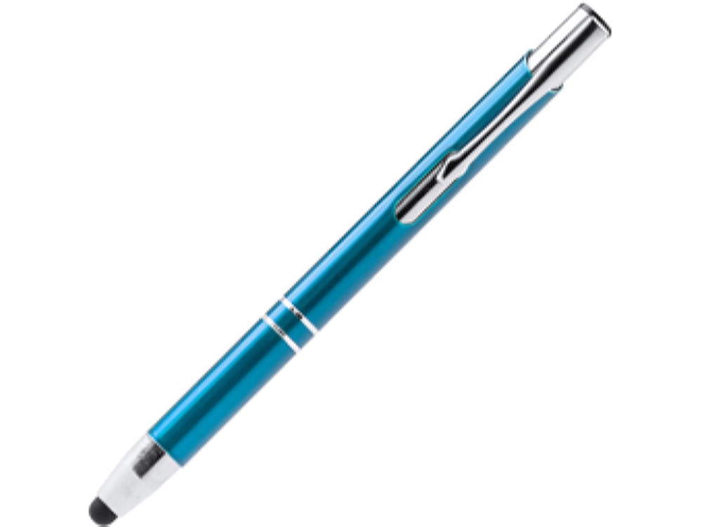 Шариковая ручка с алюминиевым корпусом и кнопкой с анодированным покрытием. Сенсорный стилус. Синие чернила.