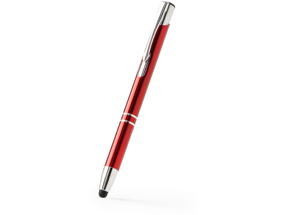 Шариковая ручка с алюминиевым корпусом и кнопкой с анодированным покрытием. Сенсорный стилус. Синие чернила.