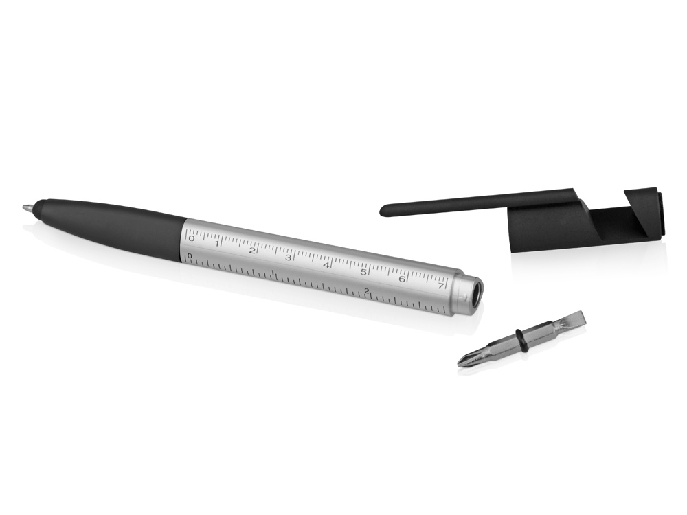 Перед вами не просто обычная шариковая ручка, а крутой многофункциональный инструмент. Multy - это ручка 6 в 1. Помимо своей прямой функции в Multy есть линейка для измерений, стилус-указатель, держатель для телефона, очиститель для экрана и даже отвертка! Чего еще можно пожелать? Это же идеальный бизнес-сувенир!