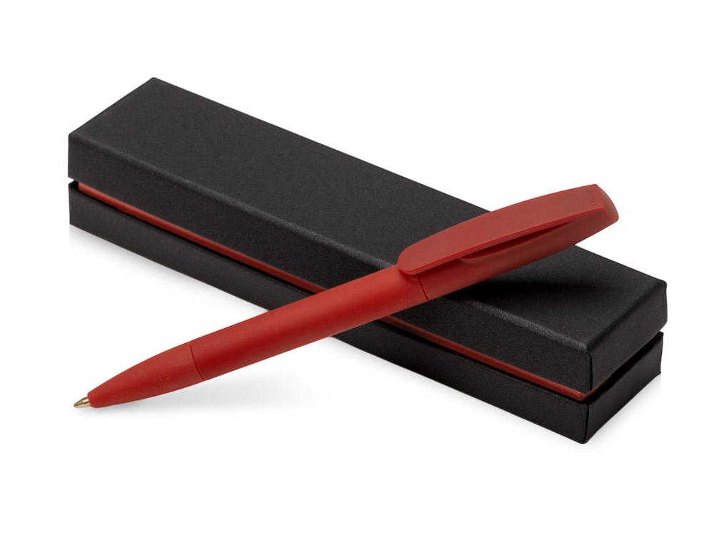 Шариковая ручка с поворотным механизмом и прорезиненным soft-touch корпусом и клипом.