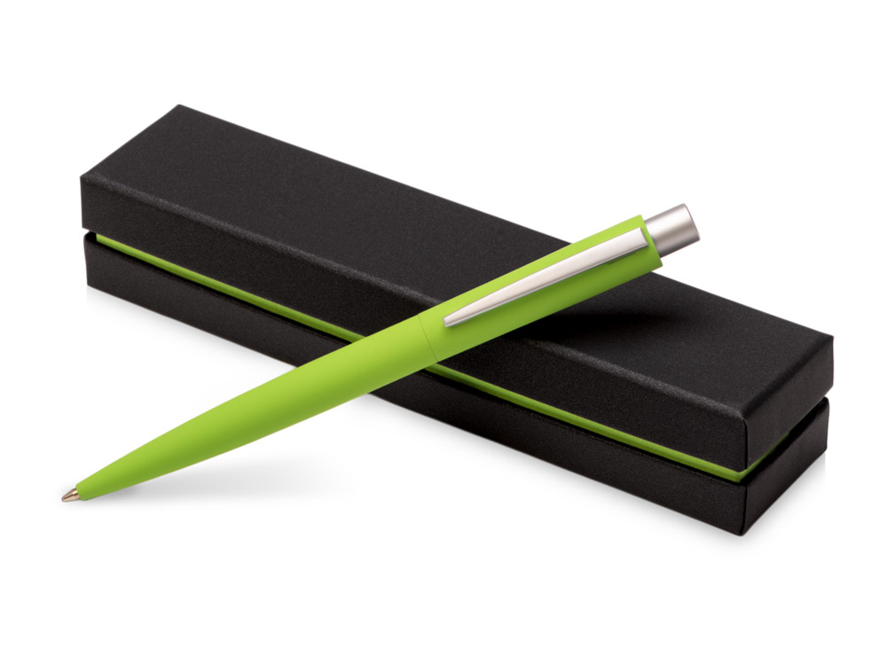 Металлическая шариковая ручка с матовым цветным прорезиненным корпусом. Металлический клип и кнопка в серебристом матовом цвете. Поставляется в красивом черном футляре, внутренний цвет которого идеально сочетается с цветом самой ручки.