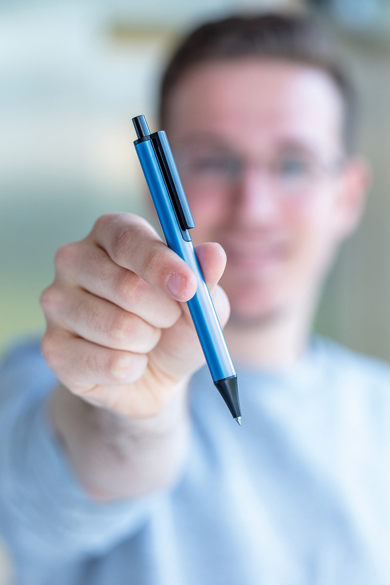 Удостоенная награды Good design потрясающего качества ручка из анодированного алюминия с привлекающим внимание дизайном. В ручке установлен стержень German Dokumental® синего цвета, чернил которого хватит на линию длиной 2000 метров. Шариковый наконечник TC-ball для исключительно гладкого письма. , высота 14 см., диаметр 1,1 см.