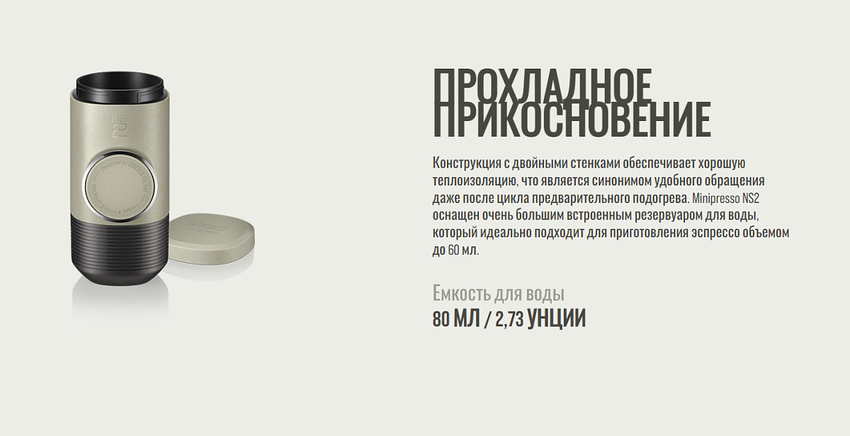 Ручная капсульная мини-кофемашина WACACO Minipresso NS2 можно заказать в нашей компании по самой доступной цене от 7 591 рублей.
