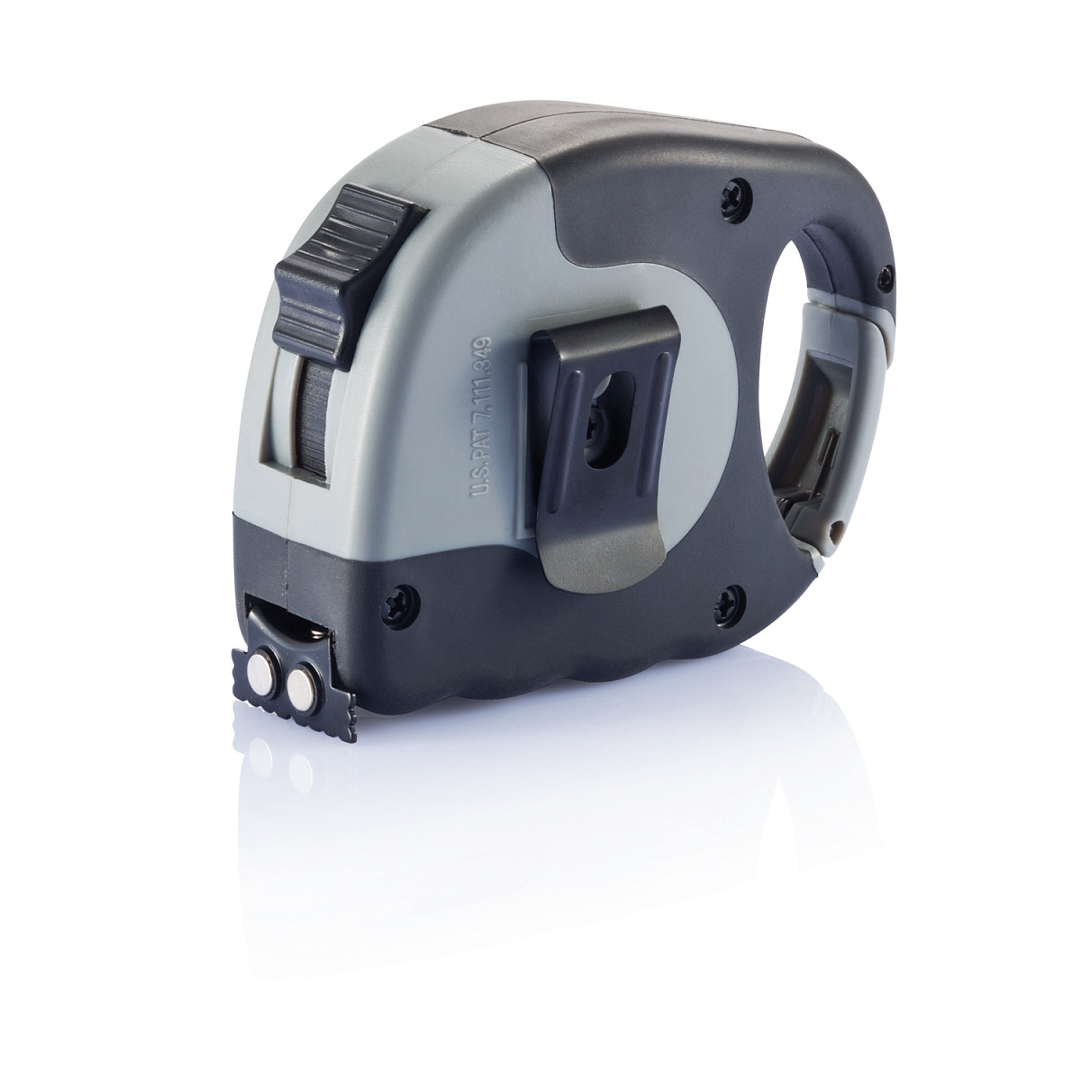 В ограничитель ленты встроены магниты, что позволяет