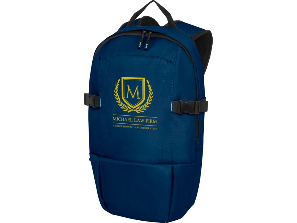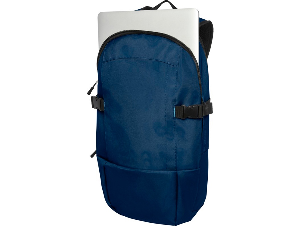 Рюкзак для ноутбука, изготовленный на 40 % из переработанных материалов и ПЭТ, сертифицированного по GRS. Имеет большое основное отделение на молнии с мягким чехлом для ноутбука 15, которое закрывается на липучку, крюк для подвешивания и вертикальное отделение на молнии. Оснащен ремнями с пряжкой для дополнительной фиксации, удобными наплечными ремнями со смягчающей прокладкой, ручкой, сетчатой задней частью с карманом на молнии и расширяющимся сетчатым боковым карманом.
