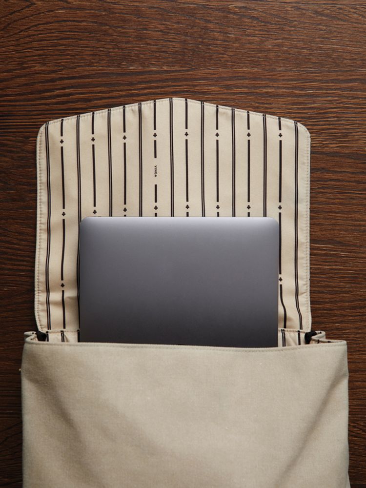 Рюкзак Bosler изготовлен из переработанного канваса: он не только выглядит модно, но и демонстрирует заботу об окружающей среде. Рюкзак оснащен отделением для ноутбука и привлекает внимание контрастными деталями из полиуретана и латунной фурнитурой.