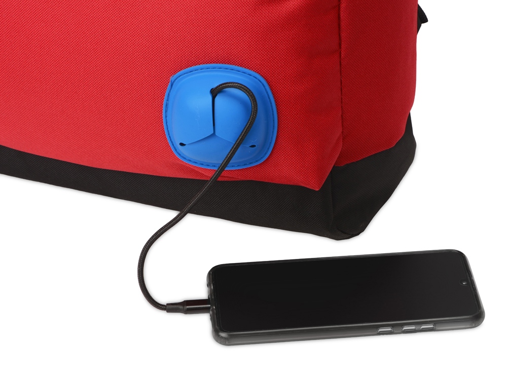 Легкий яркий рюкзак с уплотненной спинкой, наружным вместительным карманом, отверстием для наушников и регулируемыми по длине лямками.