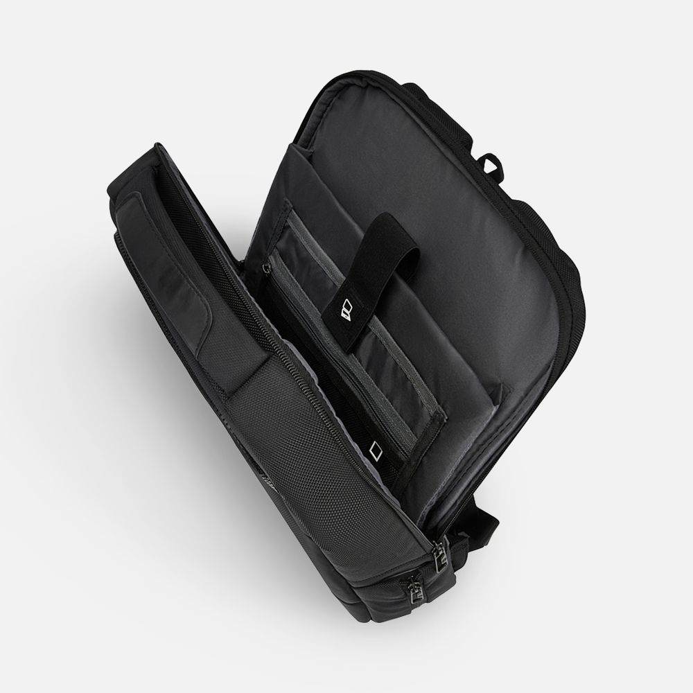 Рюкзак вмещает ноутбук диагональю до 15,6 дюймов, а также планшет, для которого предусмотрен отдельный карман на молнии. Довольно большой объем и продуманная система хранения позволяют переносить все важные документы и канцелярию, помимо основной техники.