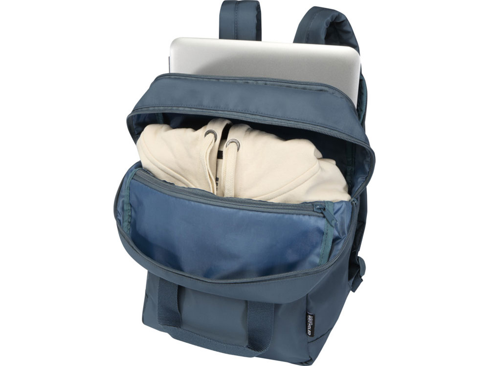 Дорожный рюкзак для ноутбука Трип Эви из переработанных материалов — это компактный и легкий рюкзак, предназначенный для путешествий налегке и повседневного использования. Изготовленный из прочного полиэстера саржевого переплетения плотностью 290D с мягкой трикотажной основой и подкладкой из материала RPET плотностью 210D/PU, он сочетает в себе функциональность с простым и практичным дизайном. Он оснащен двумя боковыми карманами для бутылок с водой, двойными ручками для переноски и удобными плечевыми ремнями. Передний карман на молнии обеспечивает организованное хранение паспорта, ручек, а также имеет ремешок для ключей, а основное отделение подходит для ноутбука или планшета. Отдельное отделение для ноутбука диаметром 14 дюймов и специальное крепление на задней стороне делают его особенно удобным для путешествий. Каждая сумка также поставляется с индикатором Aware™. Эта инновационная функция позволяет пользователям отслеживать происхождение и путь своего товара с помощью QR-кода.