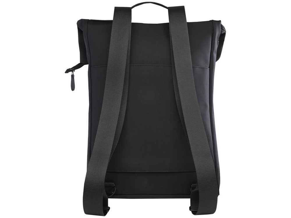 Рюкзак со сворачивающимся верхом Turner на 51% изготовлен из переработанного пластика, сертифицированного по стандарту GRS, а подкладка изготовлена из 100% переработанного ПЭТ-пластика, сертифицированного GRS. Рюкзак имеет мягкое отделение для ноутбука с диагональю 15,6 дюйма, мягкое отделение для планшета, внутренний ремешок для хранения бутылки с водой и карман на молнии для мелочей. Основное отделение имеет сворачиваемый верх, который можно надежно застегнуть с помощью пряжки. Кроме того, багажный ремень на задней стороне позволяет легко прикрепить рюкзак к чемодану на колесиках, что делает его удобным спутником в путешествии. Объем: 12 литр. 51% GRS recycled PU, 49% PU.