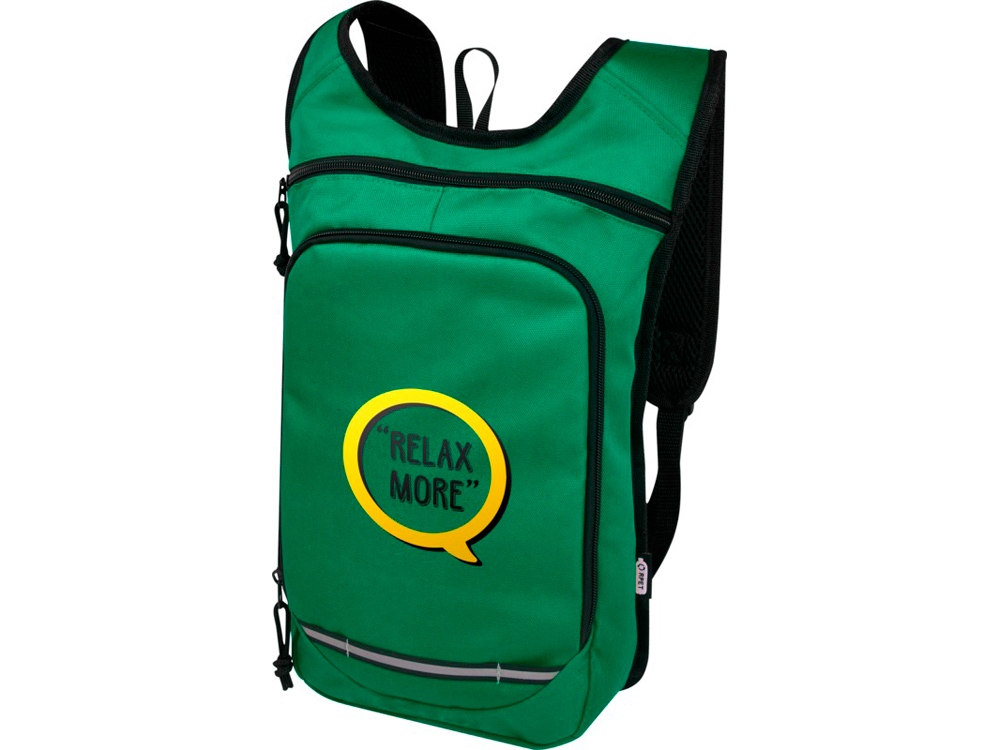 Рюкзак Trails изготовлен из 100% переработанной по стандарту GRS водоотталкивающей ткани и имеет один передний карман на молнии и одно основное отделение на молнии, а также отделение для гидросистемы. Светоотражающие полосы для видимости и сетчатая задняя часть для комфорта при переноске делает его отличным экологичным выбором для активного отдыха.