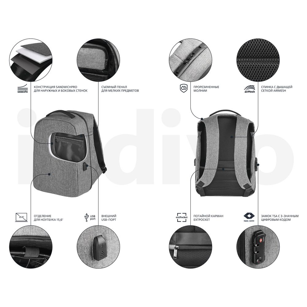 Рюкзак с потайным карманом inGreed, серый можно заказать в нашей компании по самой доступной цене от 4 639 рублей.