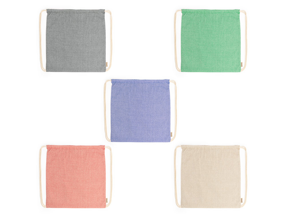 Рюкзак-мешок из переработанного хлопка плотностью 120 г/м² с меланжевой отделкой и шнурками натурального цвета. Доступен в различных цветах.