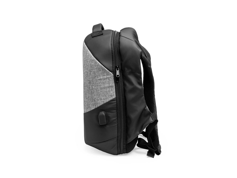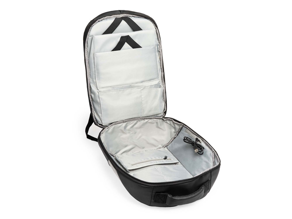 Противокражный рюкзак из нейлона. Отделение с выходом USB для подключения Power Bank (не входит в комплект). Включает в себя кабель micro USB. Многофункциональный карман на правой лямке. Основное отделение с двумя мягкими разделителями идеально подходит для ноутбука и планшета.