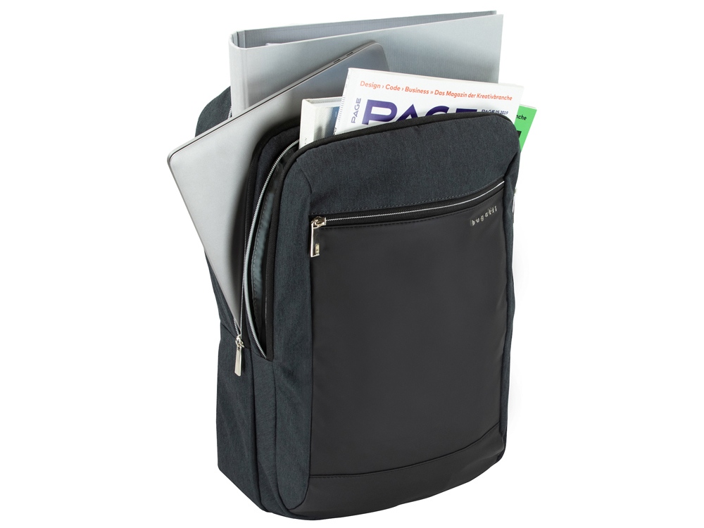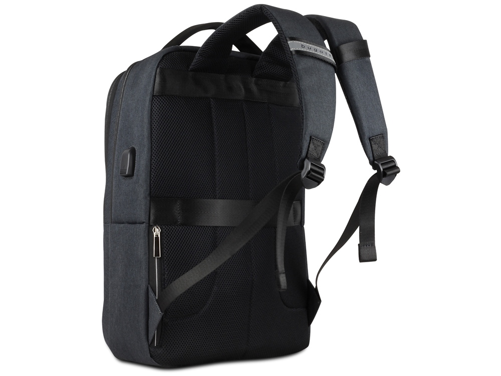 Внутренняя организация: отделение на молнии с USB-портом и мягким отделением для ноутбука 15’’, отделение на молнии с открытым карманом и карманом-органайзером (открытый карман, 3 слота для карточек, 2 держателя для пишущих принадлежностей)