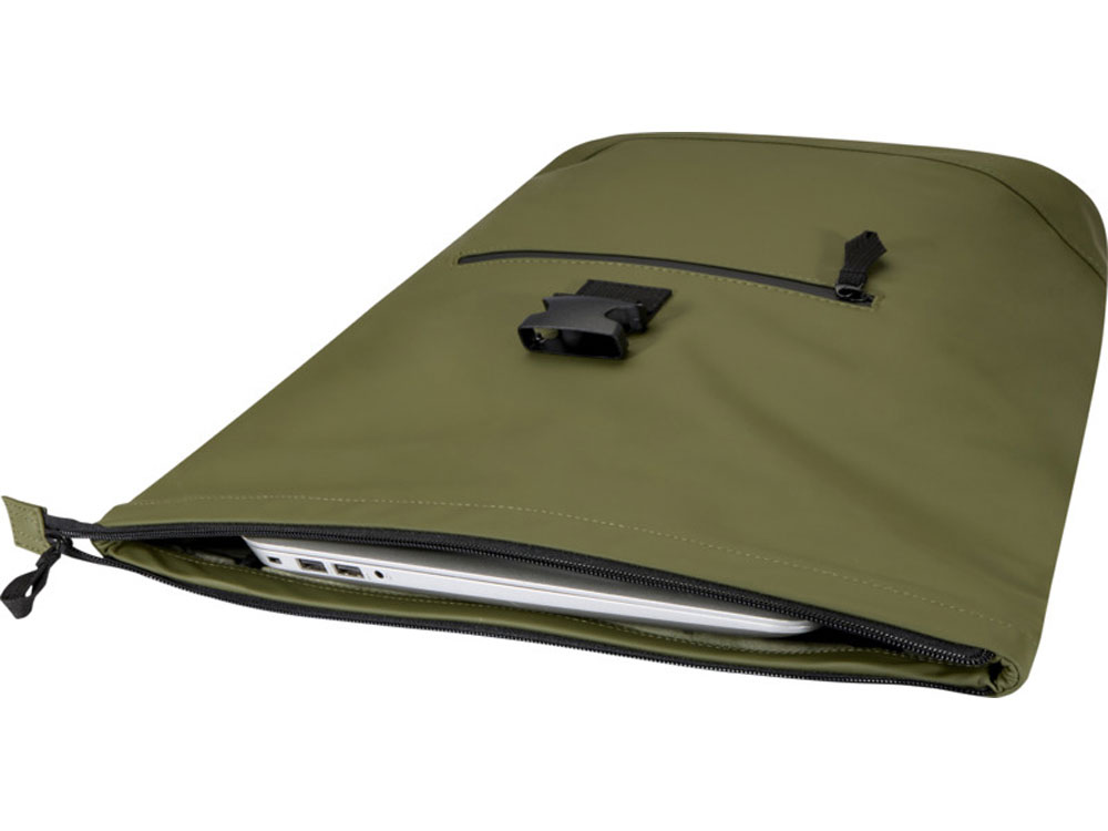 В этом рюкзаке со сворачивающимся верхом, изготовленном из высококачественной переработанной искусственной кожи с подкладкой из RPET соответствующего цвета, сочетается современный стиль и долговечность. Водонепроницаемое покрытие защитит ваши вещи, а застежка-роллтоп обеспечивает гибкое хранение, идеально подходящее для поездок на работу, путешествий или походов в спортзал. Внутри имеется мягкое отделение для ноутбука размером до 15,6 дюйма, а также дополнительный карман на молнии для организованного хранения техники и повседневных вещей. Снаружи передний карман, закрывающийся на водонепроницаемую молнию, обеспечивает безопасный доступ, а мягкие регулируемые плечевые ремни и дышащая задняя панель гарантируют комфорт в течение всего дня.