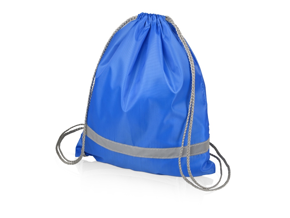 Рюкзак-мешок со светоотражающей полосой и черными шнурками.
