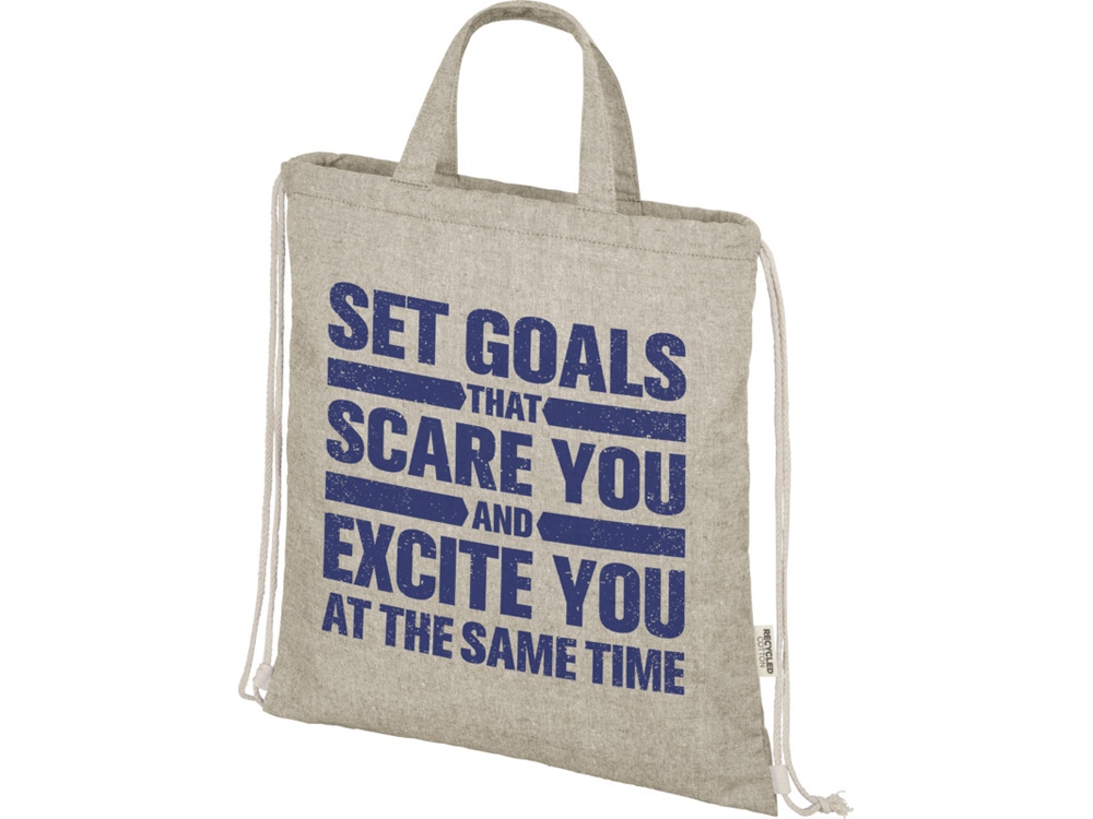 Рюкзак со шнурком из смеси переработанного хлопка и полиэстера плотностью 150 г/м². Большое основное отделение затягивается на хлопковый шнурок натурального цвета. Вторичный хлопок изготавливается из отходов, предназначенных для потребления, которые производятся текстильными фабриками в процессе резки. Подобные цвета смешиваются вместе, поэтому дополнительная окраска не требуется. Из-за особенностей переработанного хлопка возможны незначительные отклонения в цвете. Благодаря этому изделие выглядит более аутентичным. Каждый рюкзак также поставляется с индикатором Aware™. Эта инновационная функция позволяет пользователям отслеживать происхождение и путь своего товара с помощью QR-кода, повышая прозрачность цепочки поставок и способствуя более прочной связи между продуктом и процессом его производства. Прочность до 5 кг. Длина ручки: 14 см. 80% Recycled cotton, 20% Переработанный Полиэстер, 150 g/m2.