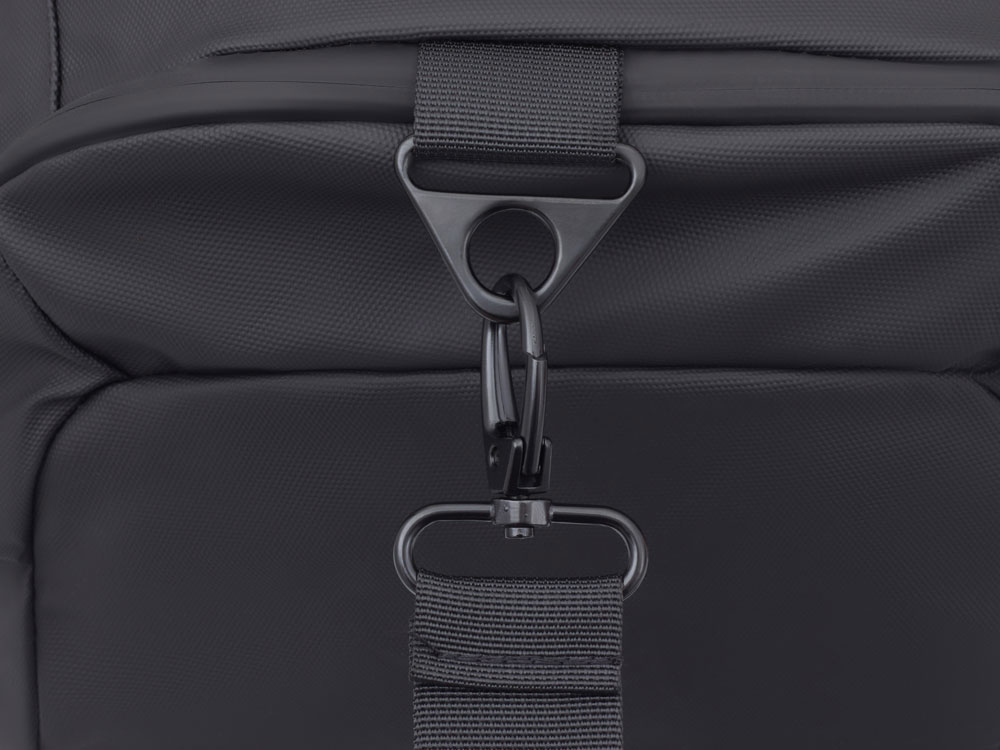 Спортивная сумка-рюкзак 2-в-1 подходит для походов в спортзал и деловых поездок. Чтобы превратить рюкзак в сумку, надо отстегнуть лямки внизу и вложить их в карман на молнии на спинке. В трансформере предусмотрено все для удобства использования:
