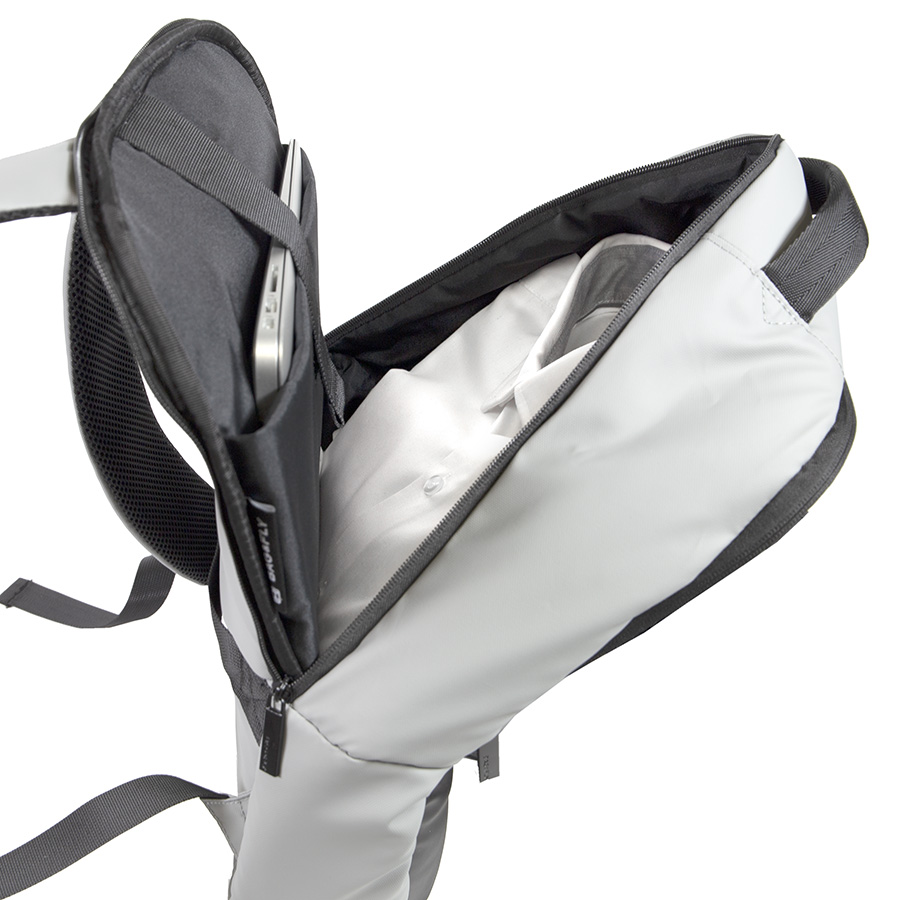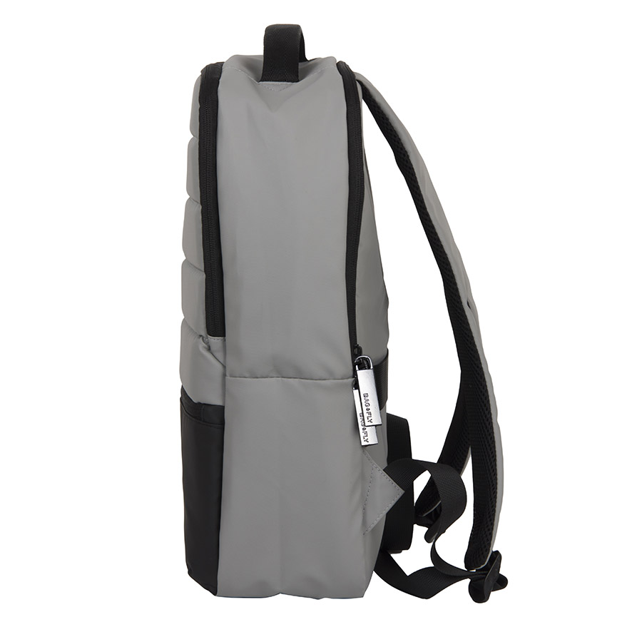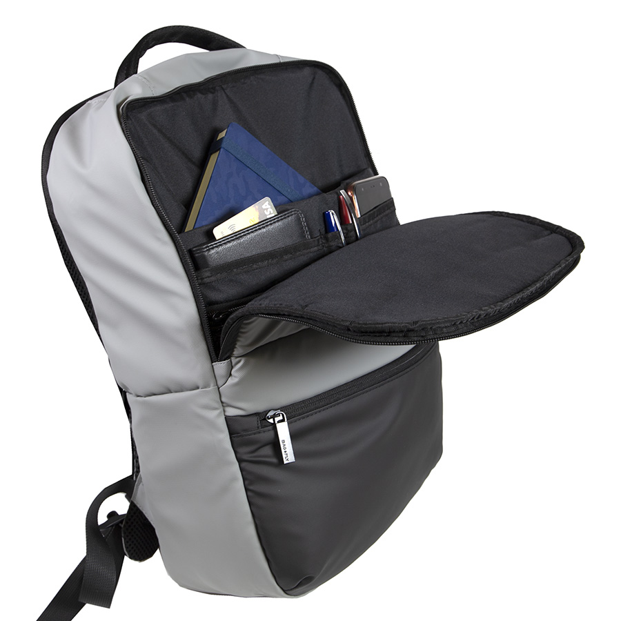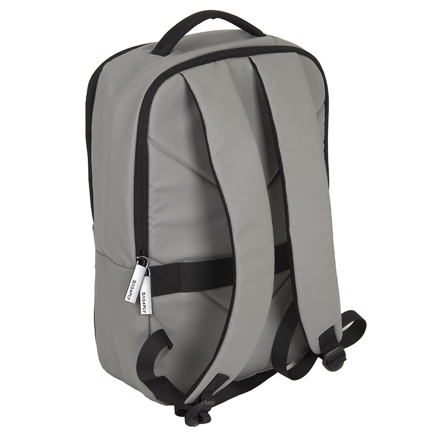 Основной цвет: близкий к Pantone 423 C, нижняя часть: цвет, близкий к Pantone 426 C • Основная ткань: 100% полиэстер c PU покрытием, подкладка: 100% полиэстер• Объём: 14 литров• Вмещает ноутбук 15,6" Описание:• Прочный и водоотталкивающий материал Anti-scratch• Два основных отдела с обратной молнией, защищающей от попадания влаги внутрь• Дополнительный внешний карман на молнии• Внутри укрепленный отдел для ноутбука с защитной тесьмой на липучке• Внутренний карман-сетка для термокружки или зонта• Дополнительные карманы для хранения • Эргономичные лямки • Укрепленная ручка рюкзака• Специальная стропа на спинке для крепления на выдвижной ручке чемодана• Лямки прошиты дополнительными стропами в быстро изнашиваемых местах, которые можно отрегулировать по длине и зафиксировать пластиковыми крепежами• Брендированные металлические пуллеры Bag Fly• Жаккардовый логотип Bag Fly внутри• Картонный ярлык Bag Fly• Упаковка: прозрачный пакет
