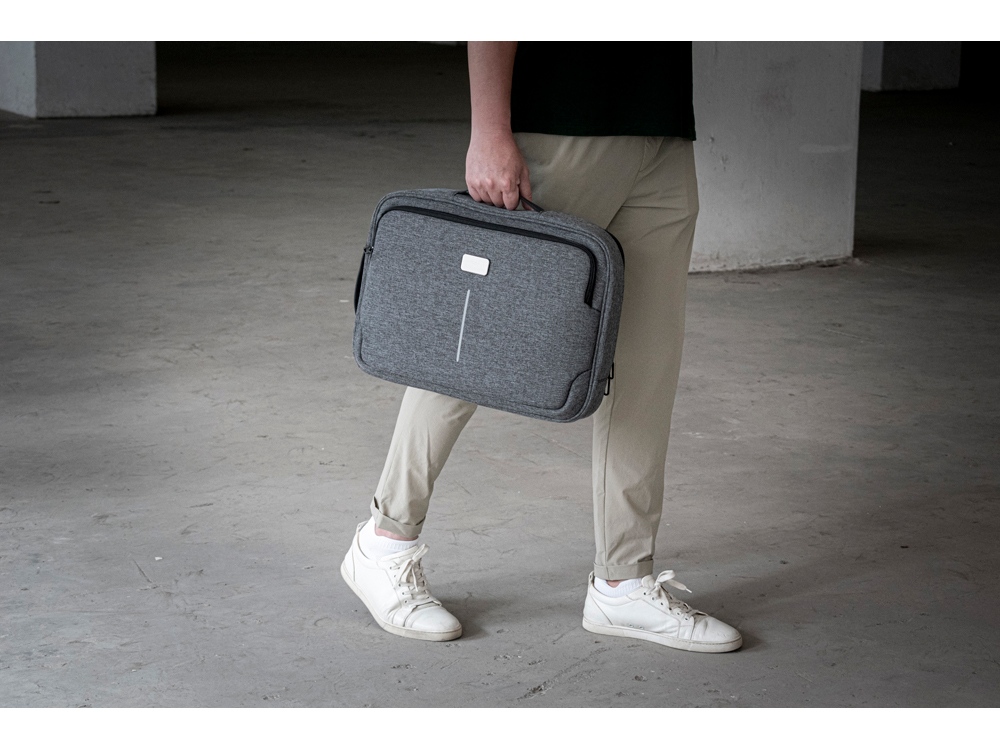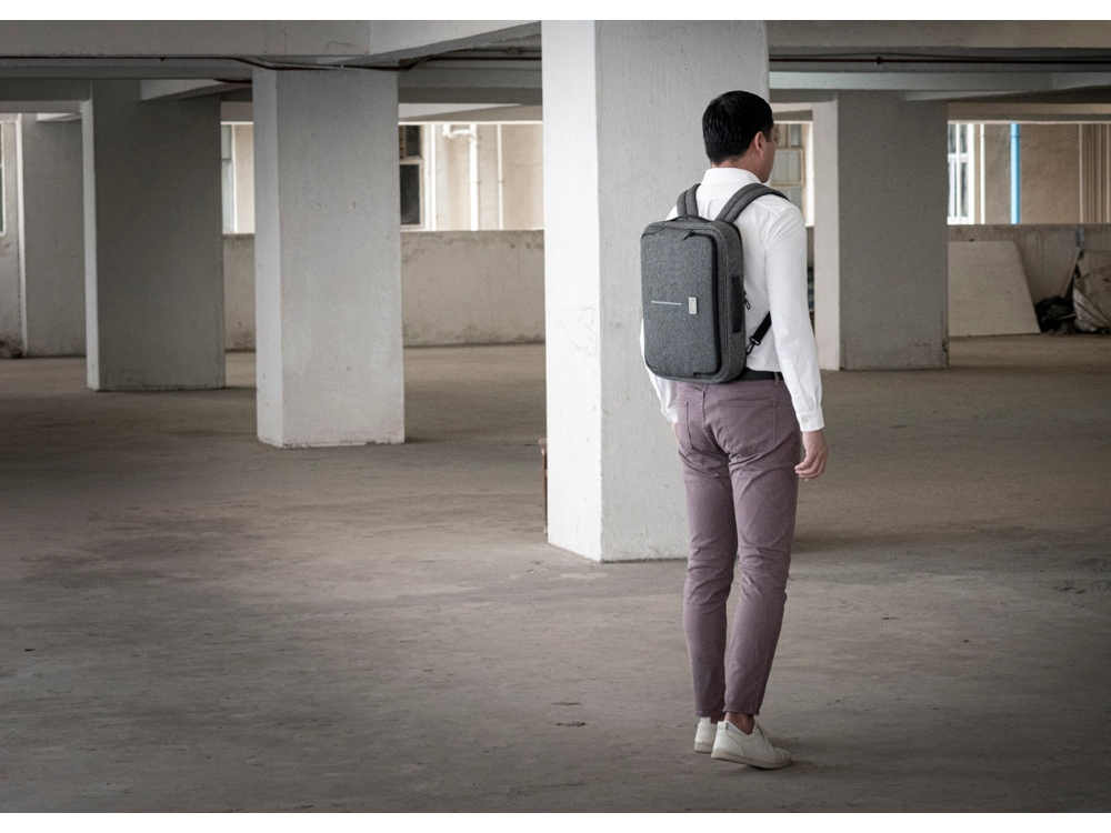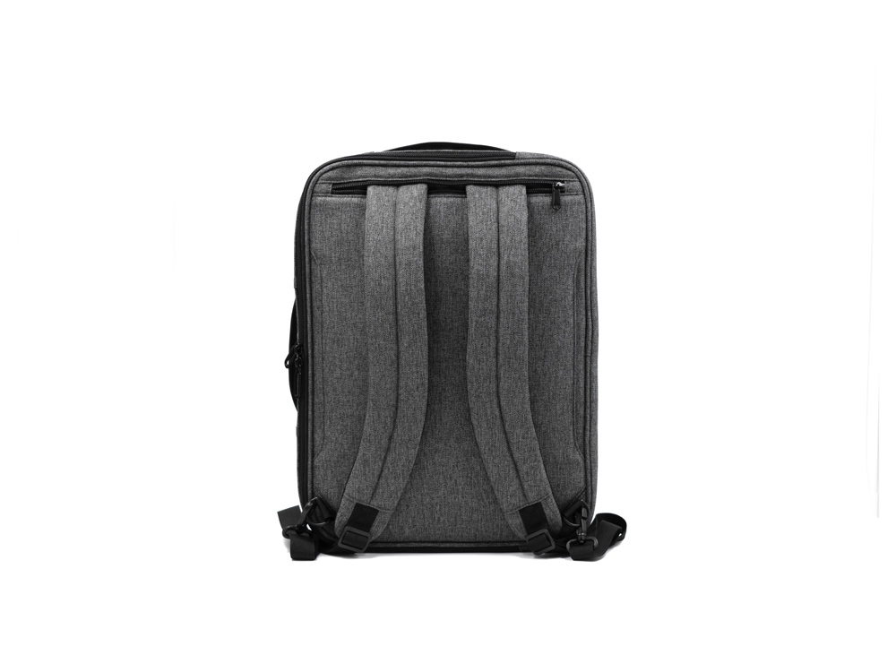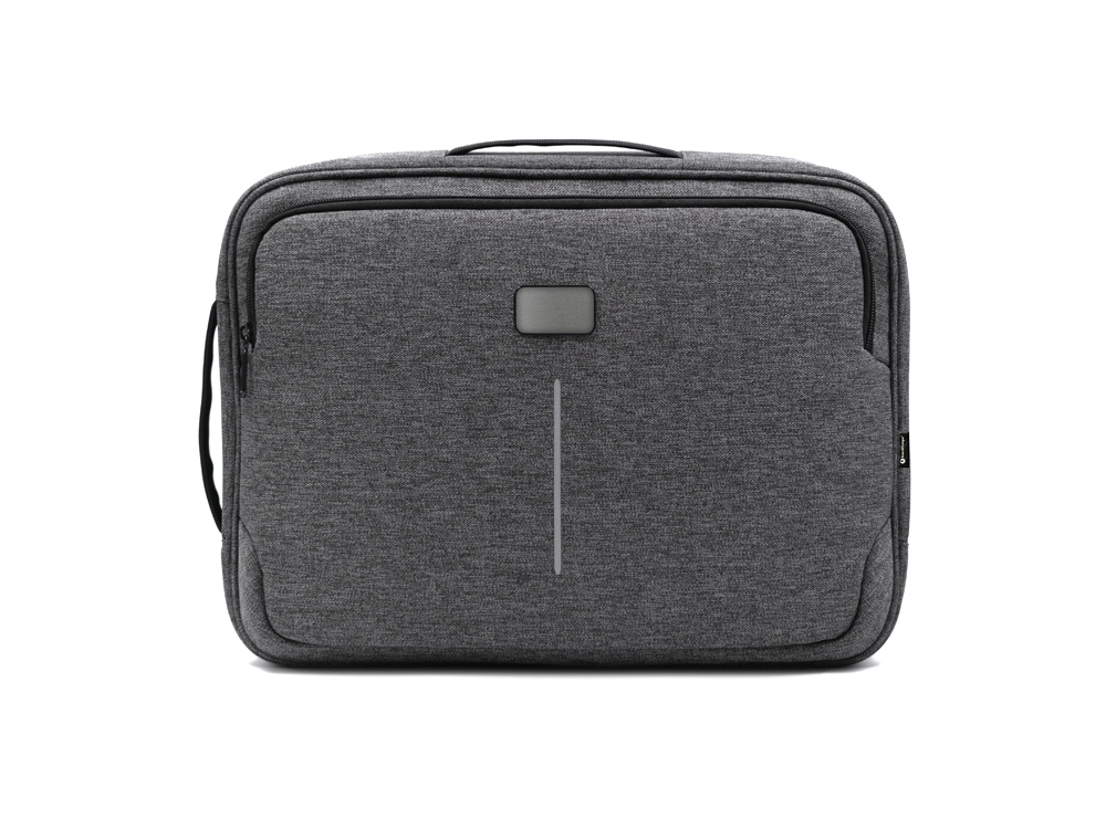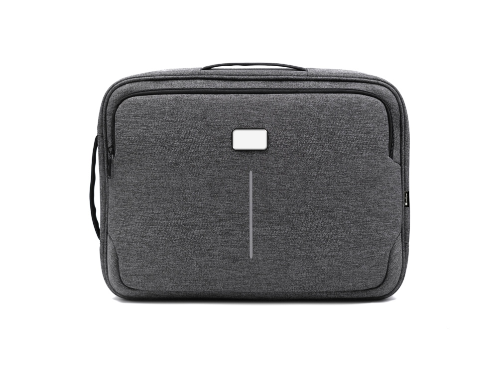Рюкзак легко трансформируется в сумку для деловых поездок. Отстегивающиеся лямки можно спрятать в карман на молнии на спине. В комплекте 2 шильда под нанесение: металлический и из искусственной кожи.