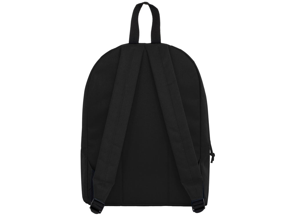 Базовый рюкзак из прочной ткани. Двойной плечевой ремень и контрастная ручка. Два кармана: основной и один спереди с молниями, клапанами и бегунками в тон