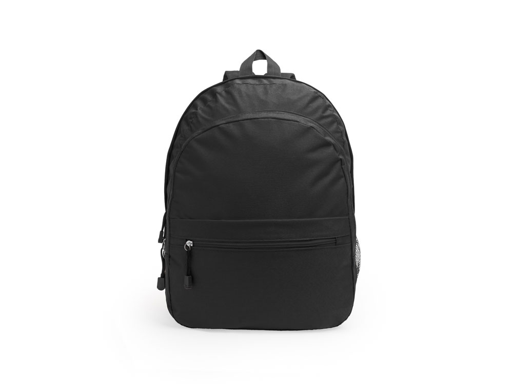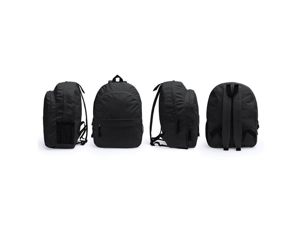 Рюкзак из полиэстера 600D с двумя основными отделениями и передним карманом. Боковой сетчатый карман. Мягкие лямки и спинка.