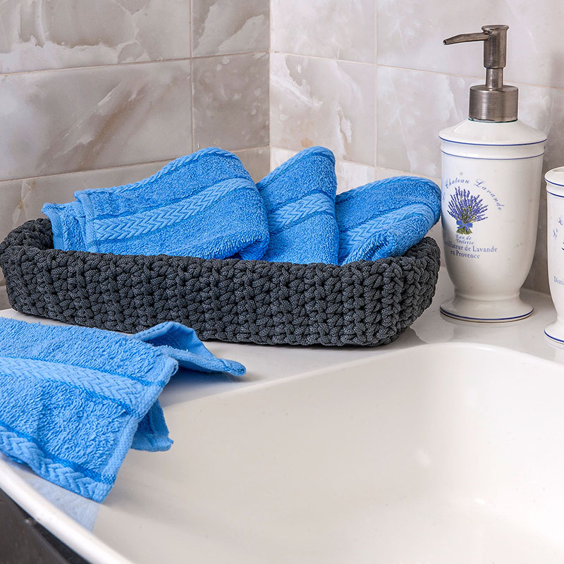 Натуральные гладкокрашеные махровые салфетки с жаккардовой косичкой из экологически чистого 100% хлопка, голубого цвета.