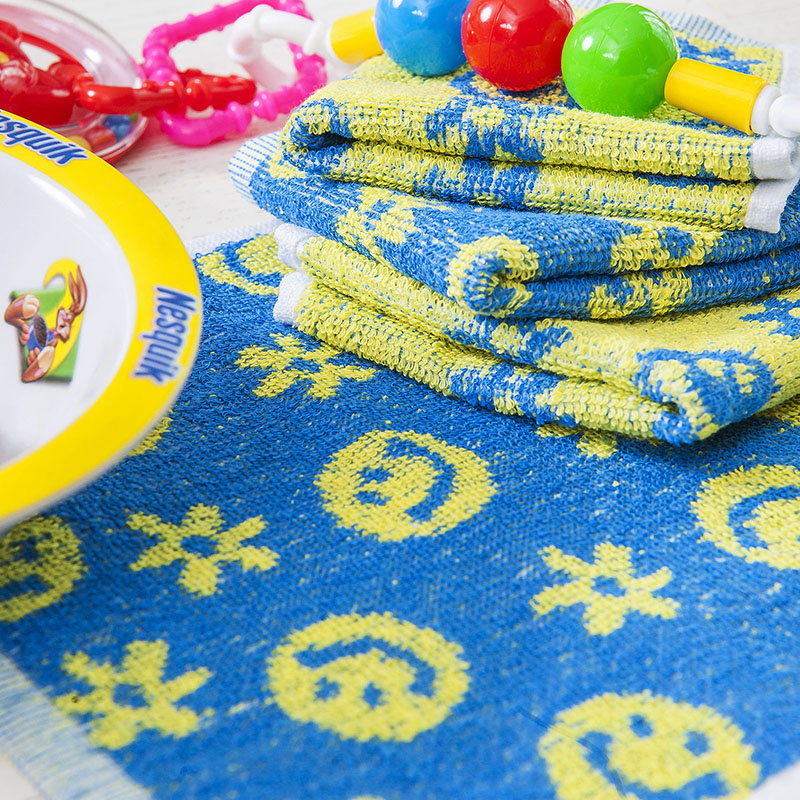 Натуральные махровые пестротканные салфетки с веселым детским дизайном из экологически чистого 100% хлопка, в упаковке 12 шт.