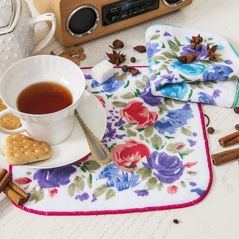 Натуральные мягкие велюровые салфетки с цветочным дизайном из экологически чистого 100% хлопка, в упаковке 12 шт.