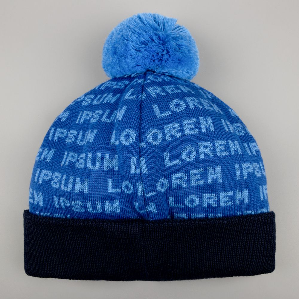 Шапка с вывязанным логотипом и индивидуальным рисунком в фирменной цветовой гамме.
