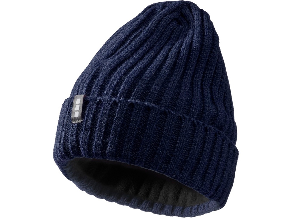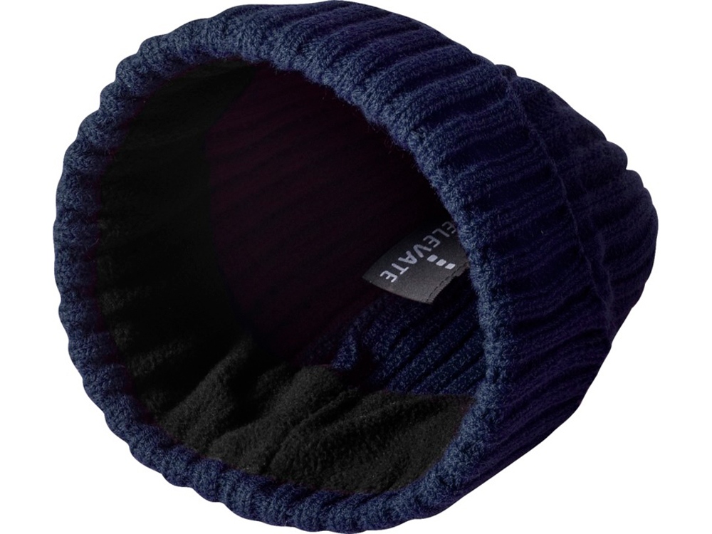 Шапка Spire. Вязаная акриловая шапка с флисовой подкладкой 180 г/м2 шириной 7,5см. Логотип Elevate снаружи и внутри шапки. Вязка в рубчик 2х2, 100% акрил.