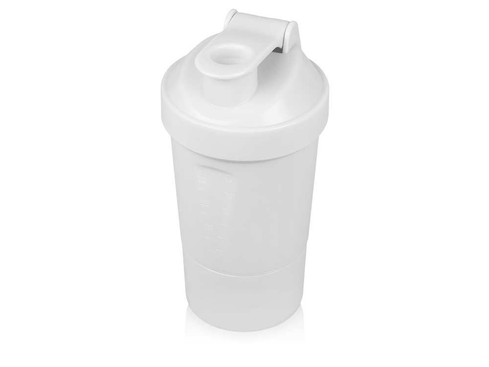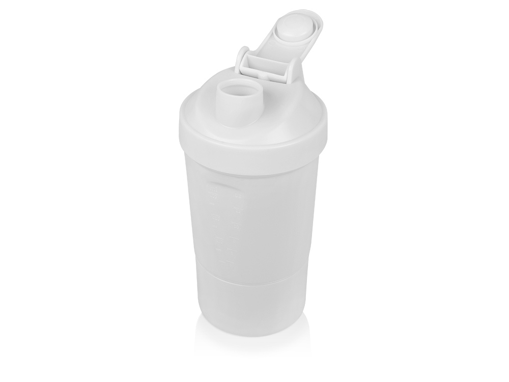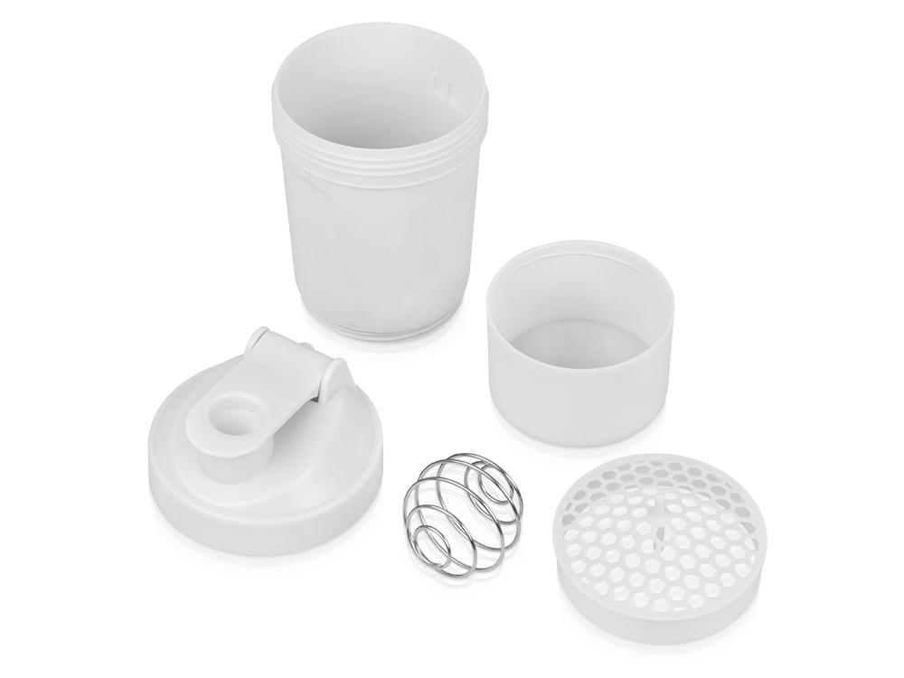 Шейкер для спортивного питания - это один из необходимых аксессуаров для спортсменов и людей, ведущих активный образ жизни. В нем можно приготовить протеиновый коктейль или фруктовый напиток. Шейкер классической формы, он удобно лежит в руке, к донышку прикручивается емкость для смешивания (таблетница), в которой можно хранить спортивные добавки: протеиновый порошок, витамины и другие концентраты. Внутри колбы имеется пластиковая сетка, чтобы процеживать спортивный напиток, а также металлический размешиватель, который растворяет порошок в напитке без комочков. Объем - 400мл. Шейкер изготовлен из пищевого пластика, он герметичен и легко моется.