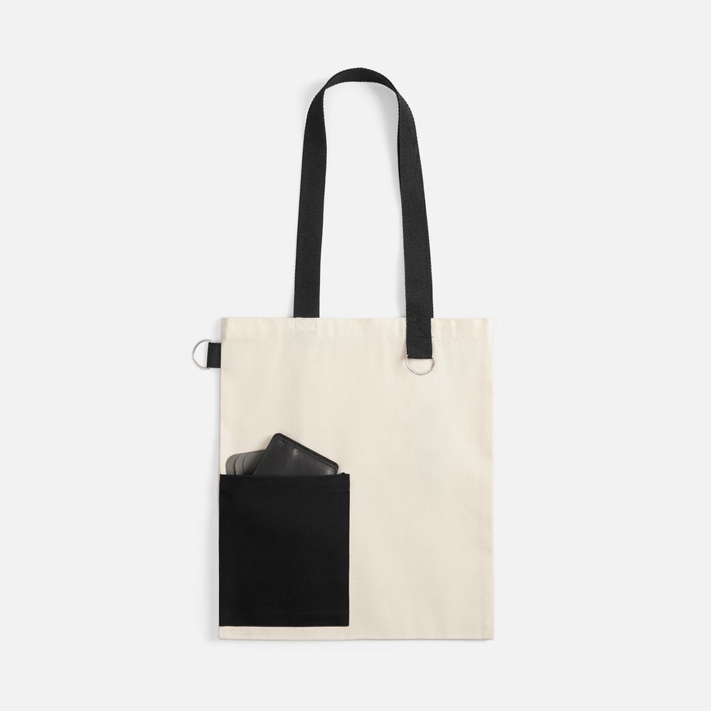 Onlook — стильный и практичный шопер из неокрашенного хлопка с наружным карманом и контрастными деталями. Благодаря удобному креплению с карабином внутри сумки можно надежно зафиксировать ключи, телефон или кошелек — больше не нужно беспокоиться о потере важных предметов среди прочего содержимого, они всегда будут под рукой.