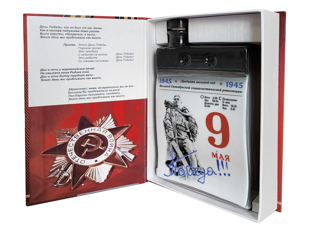День Победы - один из самых важных и памятных государственных праздников в нашей стране. В этот знаковый для России день принято дарить памятные сувениры. Штоф Календарь 9 мая - это великолепный подарок, который запомнится надолго.