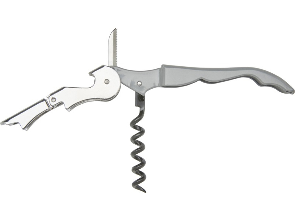 Нож официанта из нержавеющей стали с цветным корпусом со штопором, обрезчиком для фольги и открывалкой для бутылок. Благодаря двухступенчатой конструкции с его помощью вытащить пробку из бутылки не составит труда.