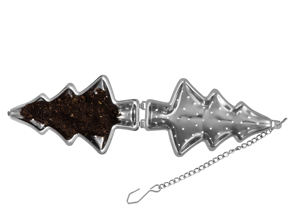 Фильтр-ситечко для чая в форме новогодней елки. Выполнен из высококачественной пищевой нержавеющей стали 304 марки.