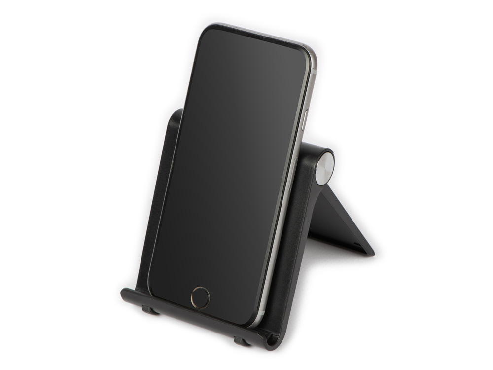 Подставка выполнена из прочного ABS пластика и имеет 6 регулируемых позиций. Имеет значительную площадь для нанесения логотипа спереди и сзади (тампопечать и цифровая печать). На подставке можно расположить смартфон любой диагонали как горизонтально, так и вертикально. Поставляется в картонной коробочке.