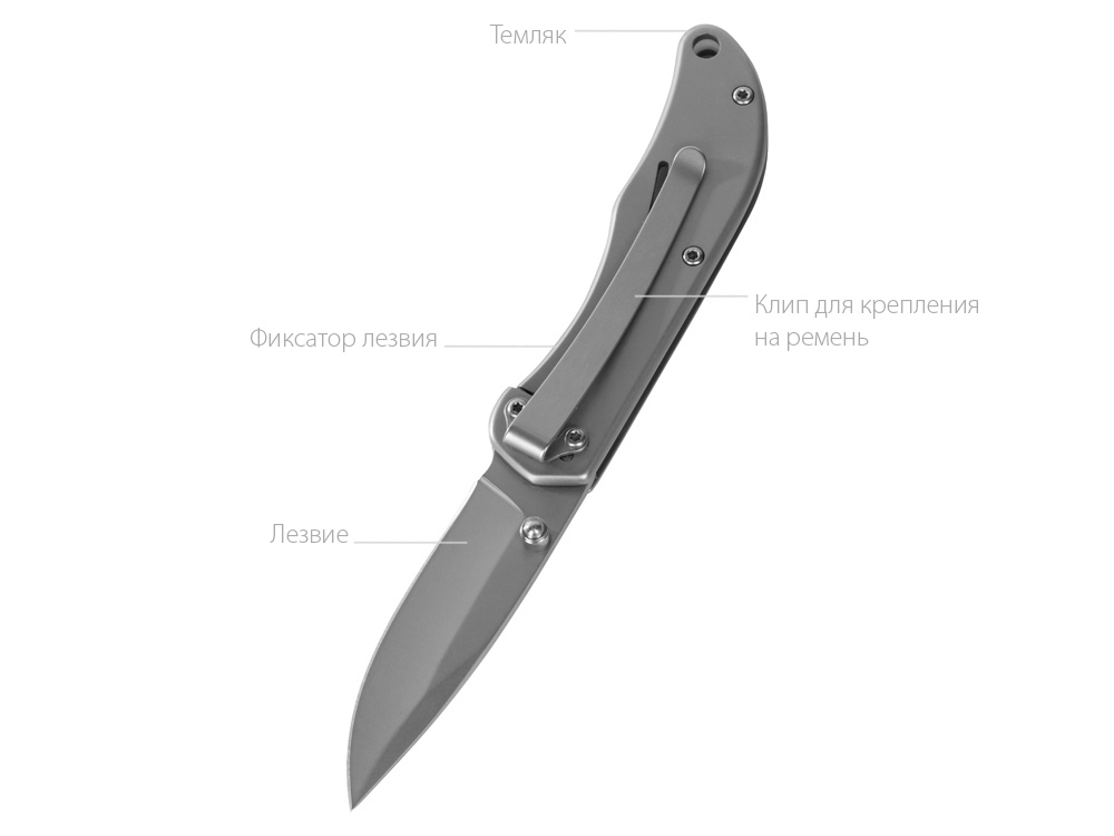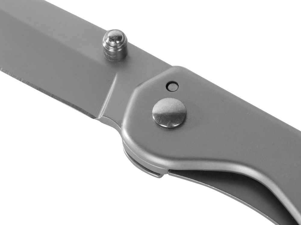 Складной нож бренда roq из нержавеющей высококачественной стали AISI 420. Матовый оттенок стали позволяет сделать заметное брендирование как на клинке, так и на рукояти.