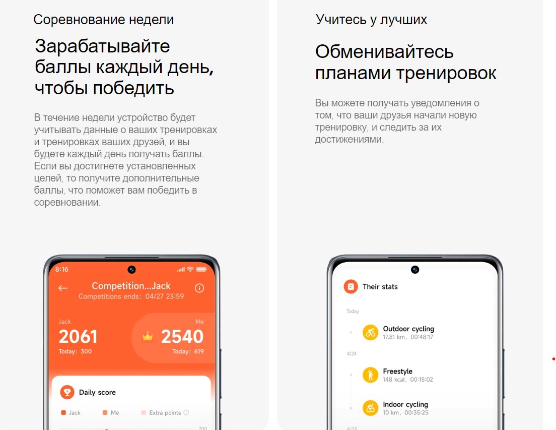 Функционал: 110+ режимов тренировок; уроки бега у вас на запястье; новичок (базовые занятия бегом/ходьбой; усиленные занятия бегом; базовая пробежка); сжигание жира (базовые занятия; усиленные занятия; MIIT); выносливость (базовые занятия; усиленные занятия); интервалы (базовые; усиленные); дыхательные упражнения