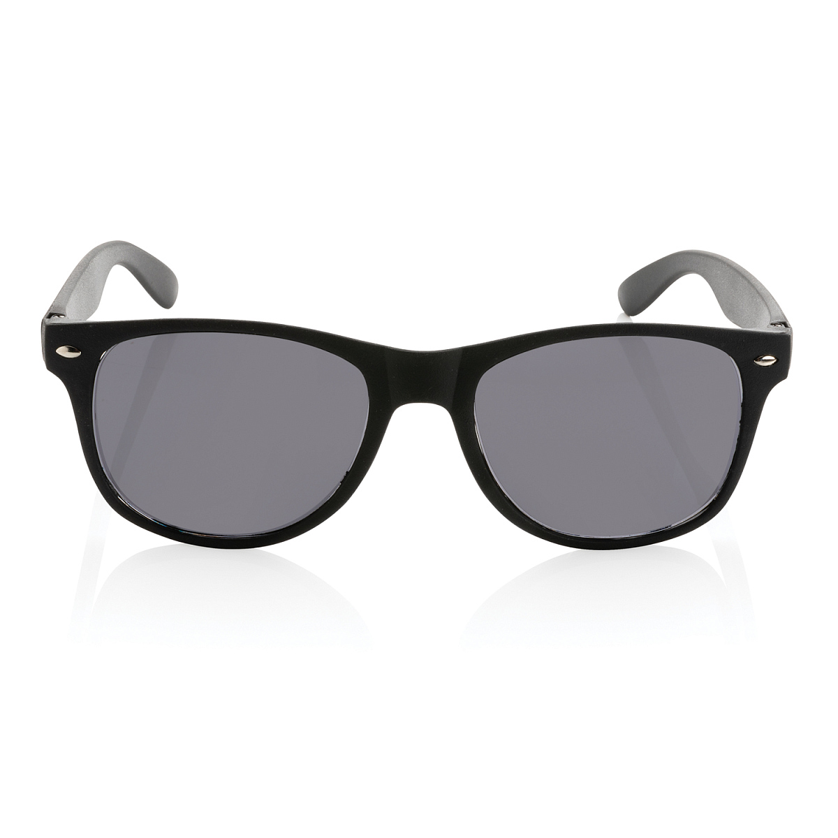 Солнцезащитные очки из полипропилена с черными акриловыми линзами с защитой UV 400. Петли с металлическими винтами для надежного крепления дужек. Длина 14,5 см., ширина 4,7 см., высота 2,7 см., диаметр 0 см.