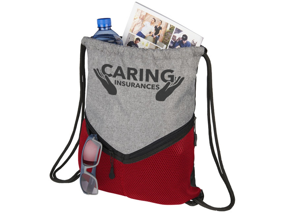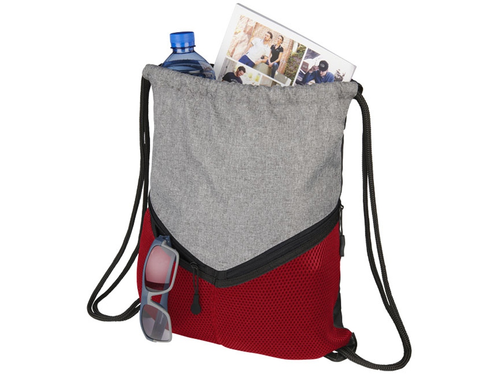 Спортивный рюкзак с застежкой на шнурке, большим основным отделением и двумя сетчатыми карманами на молнии. Сделано с прочной полиуретановой подложкой.