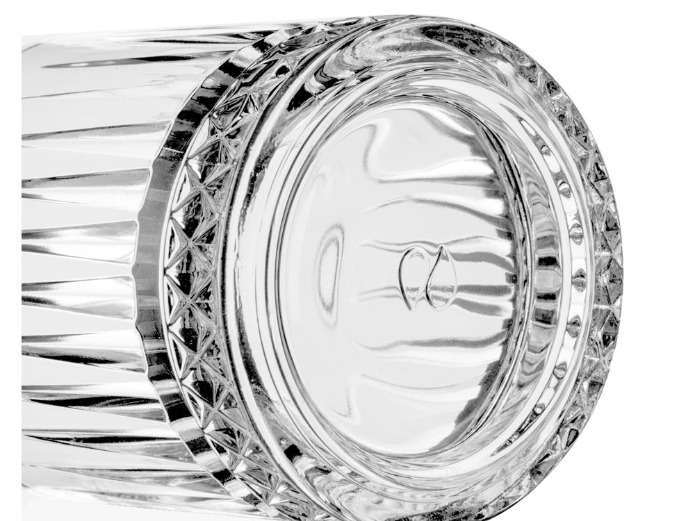 Рельеф напоминает огранку драгоценного камня и особенно эффектно проявляется, когда бокал заполнен.